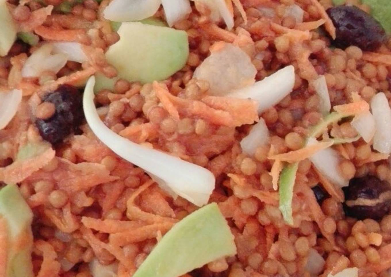 - Procedemos a帽adir los ingredientes lentejas, la zanahoria rallada el aguacate a trozos, olivas y la cebolla troceada con el ali帽o..
