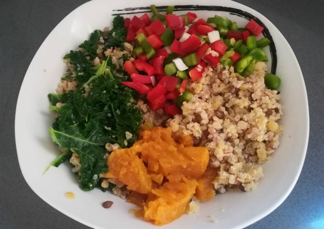 Lentejas con Espelta, Quinoa, Kale, Nabo y Pimientos