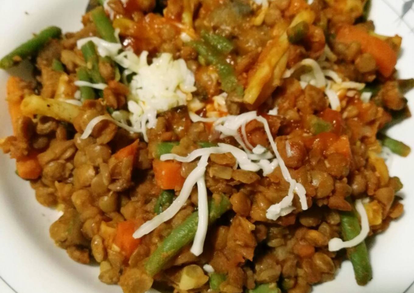 Hey everyone, I hope you're having an amazing day today. Today, I'm gonna show you how to make a special dish, Lentejas con salteado campestres. One of my favorites food recipes. For mine, I am going to make it a bit tasty. This is gonna smell and look delicious.