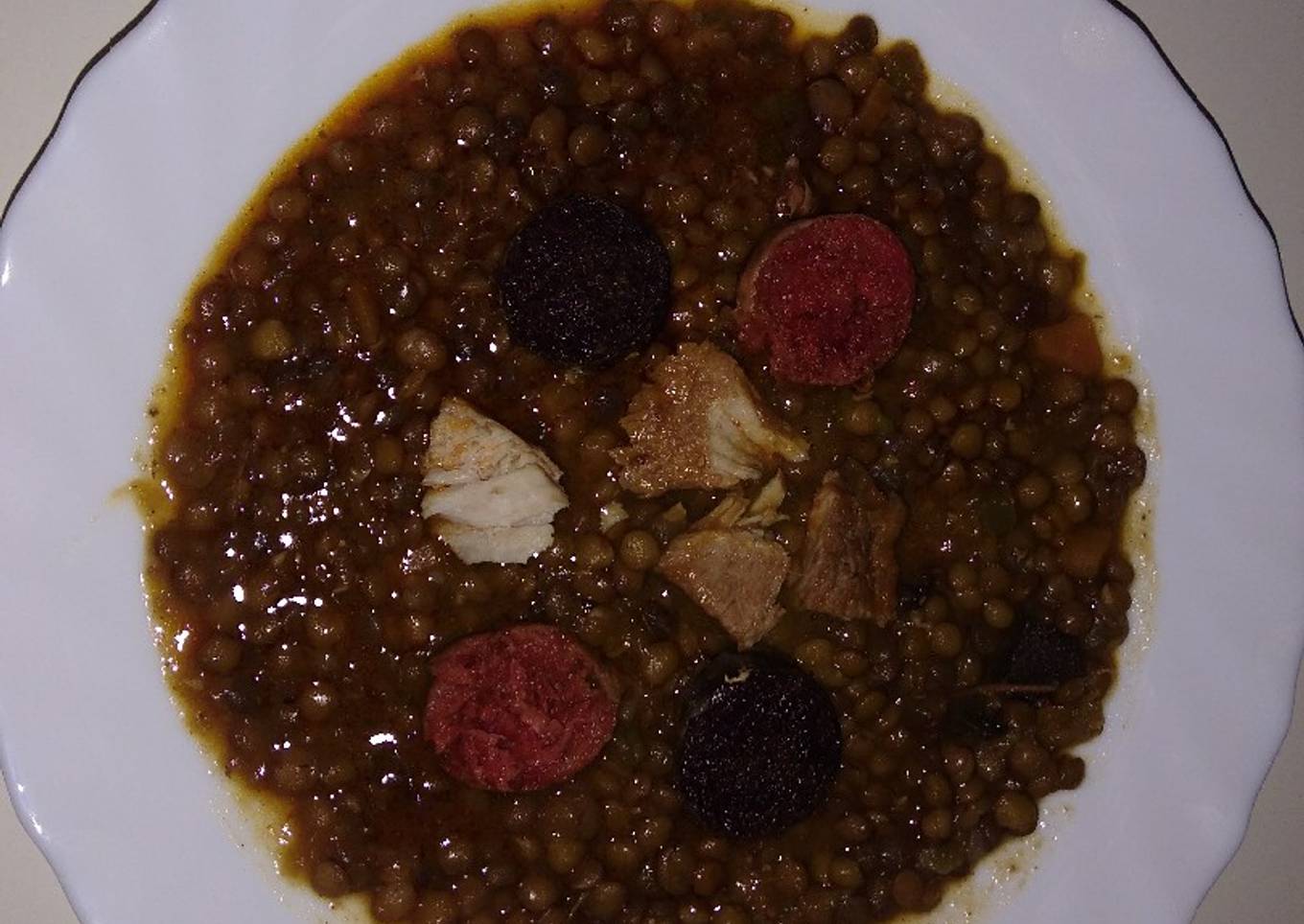 - Por cada cazo de lentejas, 3 cazos de agua o caldo