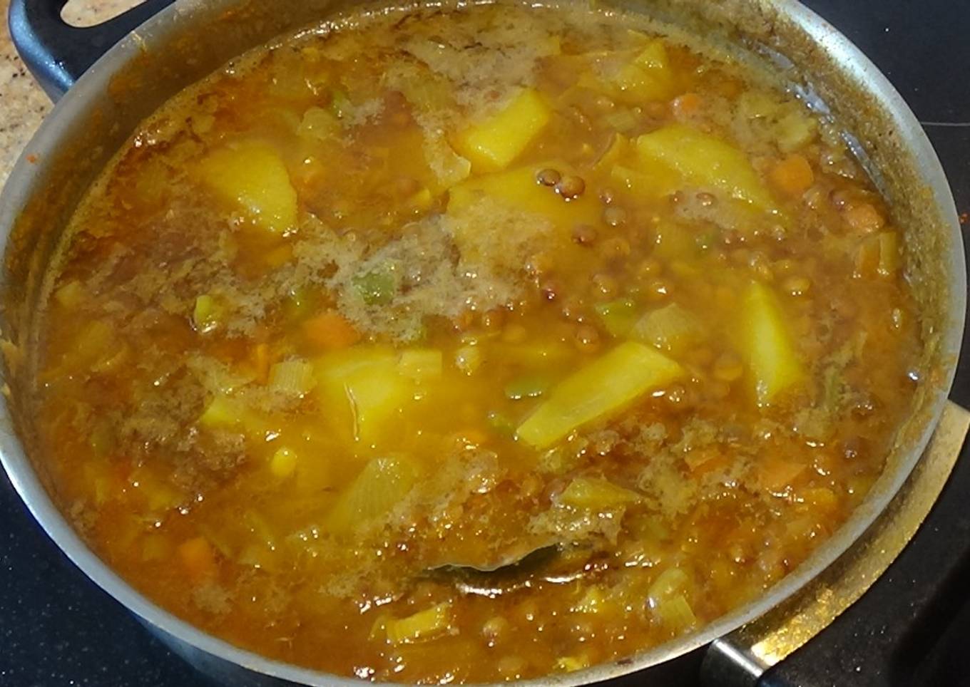 Las lentejas han de quedar cocinadas al punto, es decir, ni crudas ni deshechas, las verduras bien cocidas pero no en exceso igual que las patatas todo bien sazonado.