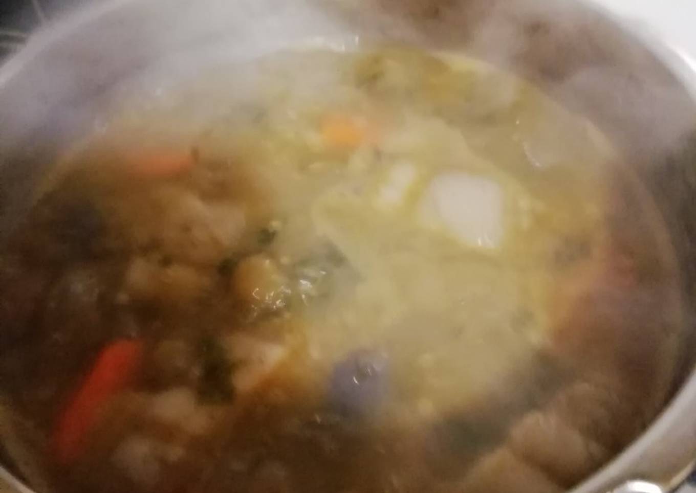 - Se echan las pastillas de caldo de carne y se deja cocer, al cabo de media hora se a帽aden las espinacas.