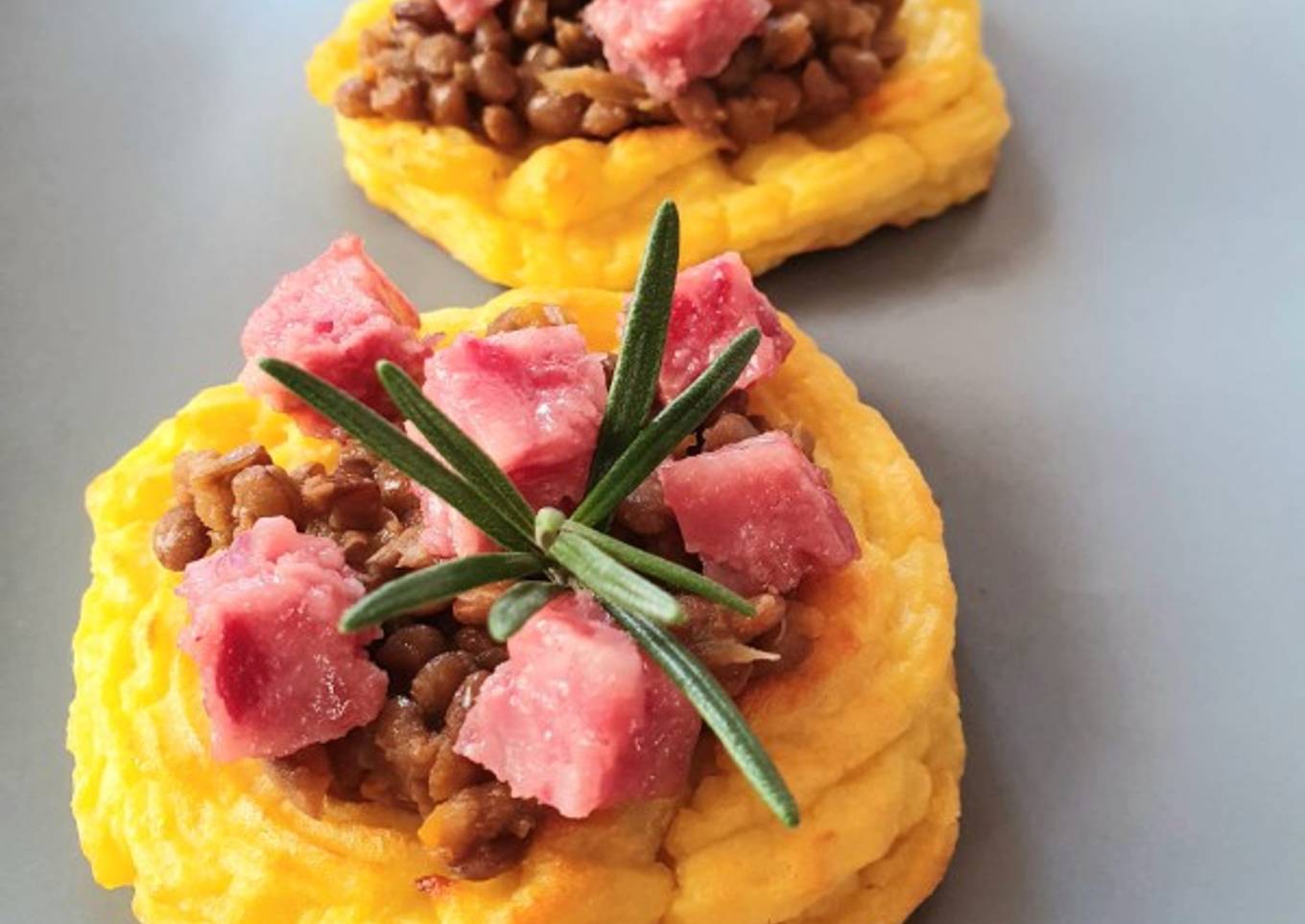 - Unir una o dos cucharas de lentejas, los cubitos de chorizo o salchichón y una ramita de romero. Feliz año nuevo!!