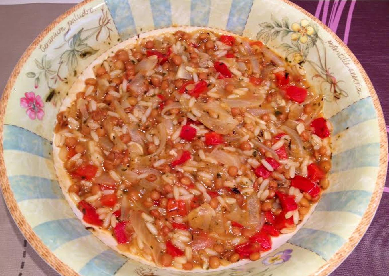 - Incorporar las lentejas cocidas y el arroz previamente cocido