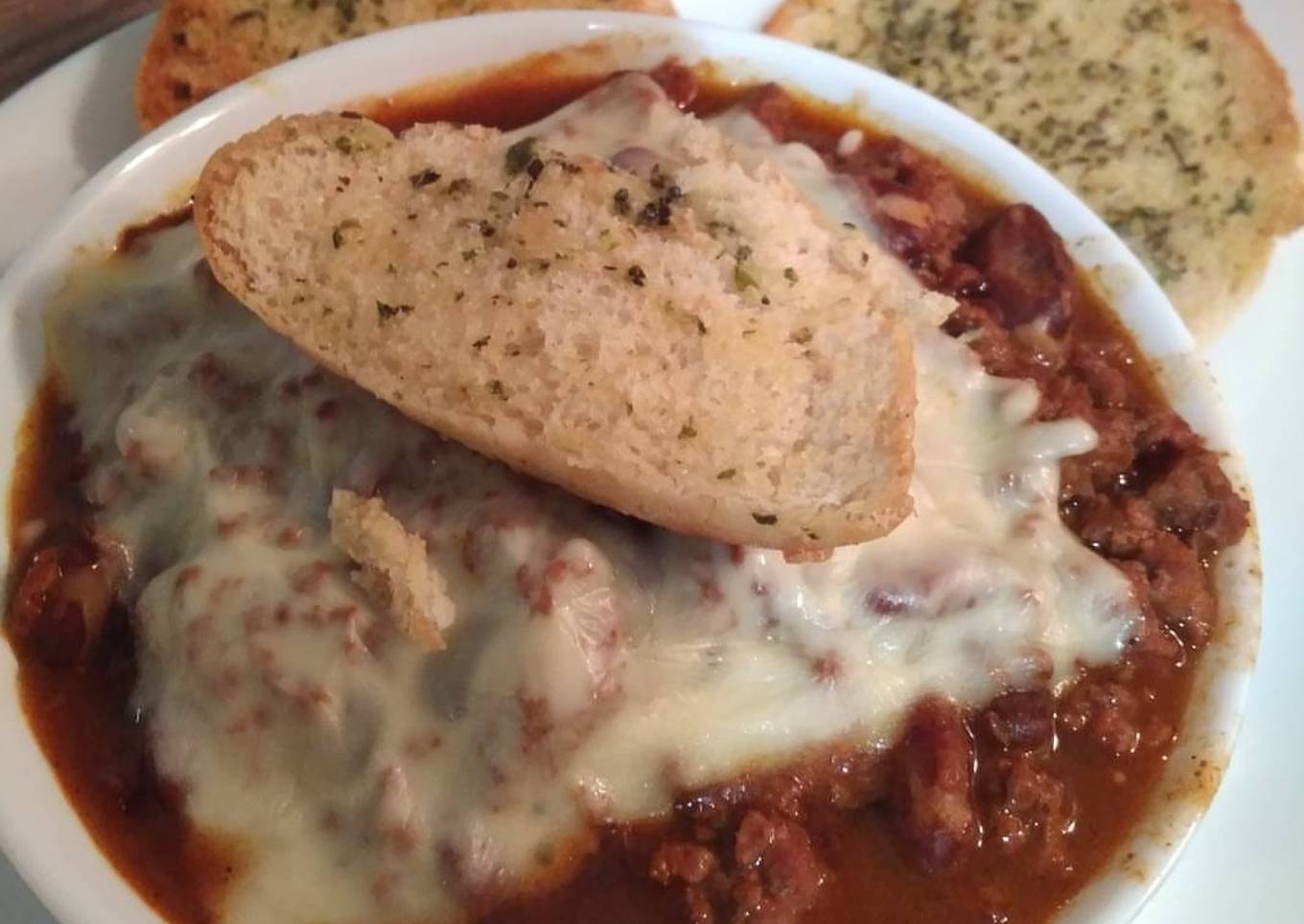 - Primero pon una cápita de chile con carne, luego la hamburguesa, baña con más chile con carne y tapa con una loncha de queso. Cuando tengas todas las cazuelitas listas pon en el horno a 200° en una de las placas, y en otra los bollos de pan para que derrita la mantequilla. Cuando funda en queso sácalas y mira que los panes estén diraditos.Pon las cazuelas cada una en un plato y los panes a los lados... ya puedes disfrutar de un viaje "AL SUR DE LA FRONTERA"