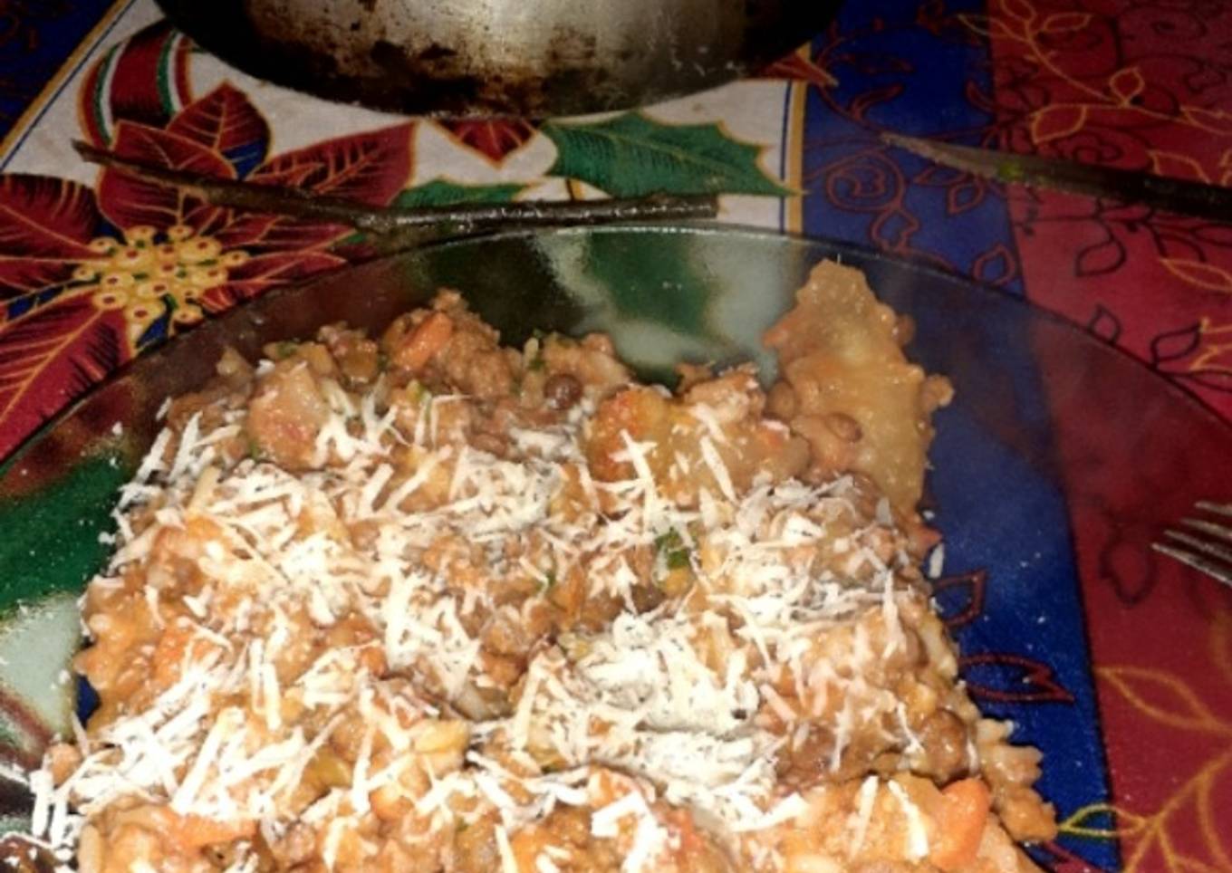 Guisito de arroz de lentejas y molida