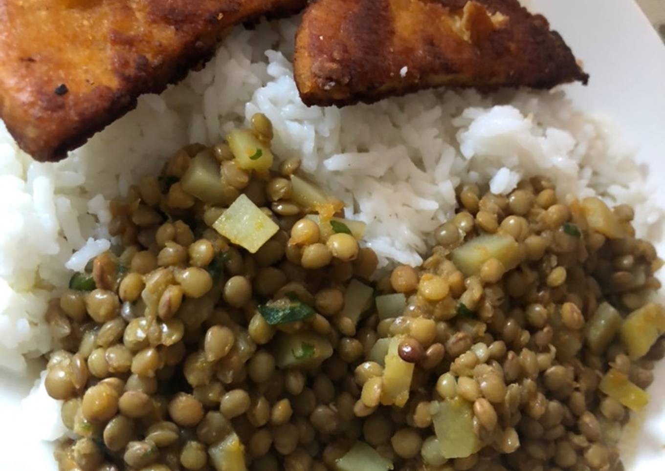 Instructions to make to make Lentejitas con arroz y hamburguesas de pollo