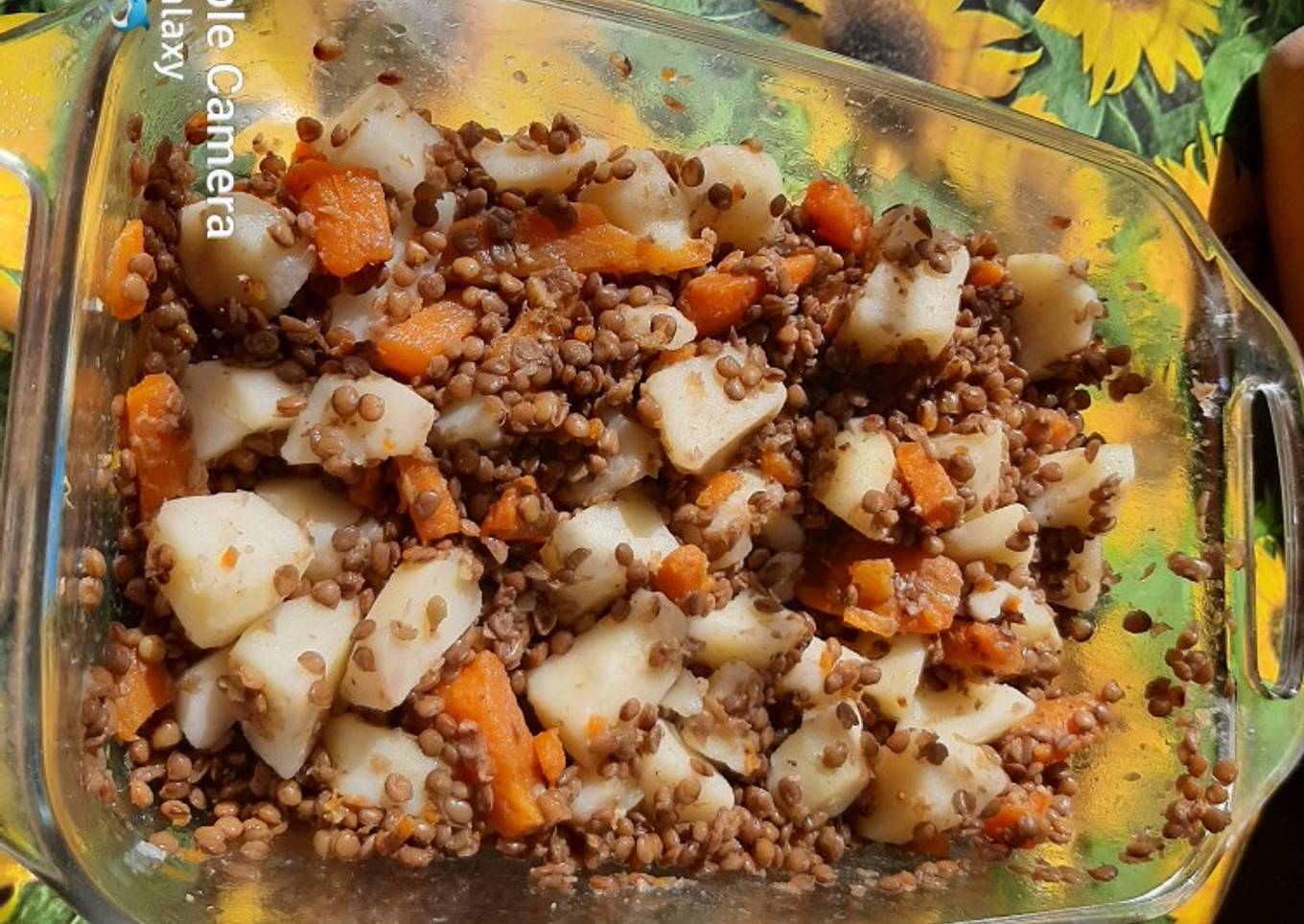 Instructions to make to make Ensalada de papas y lentejas con zanahoria 馃構