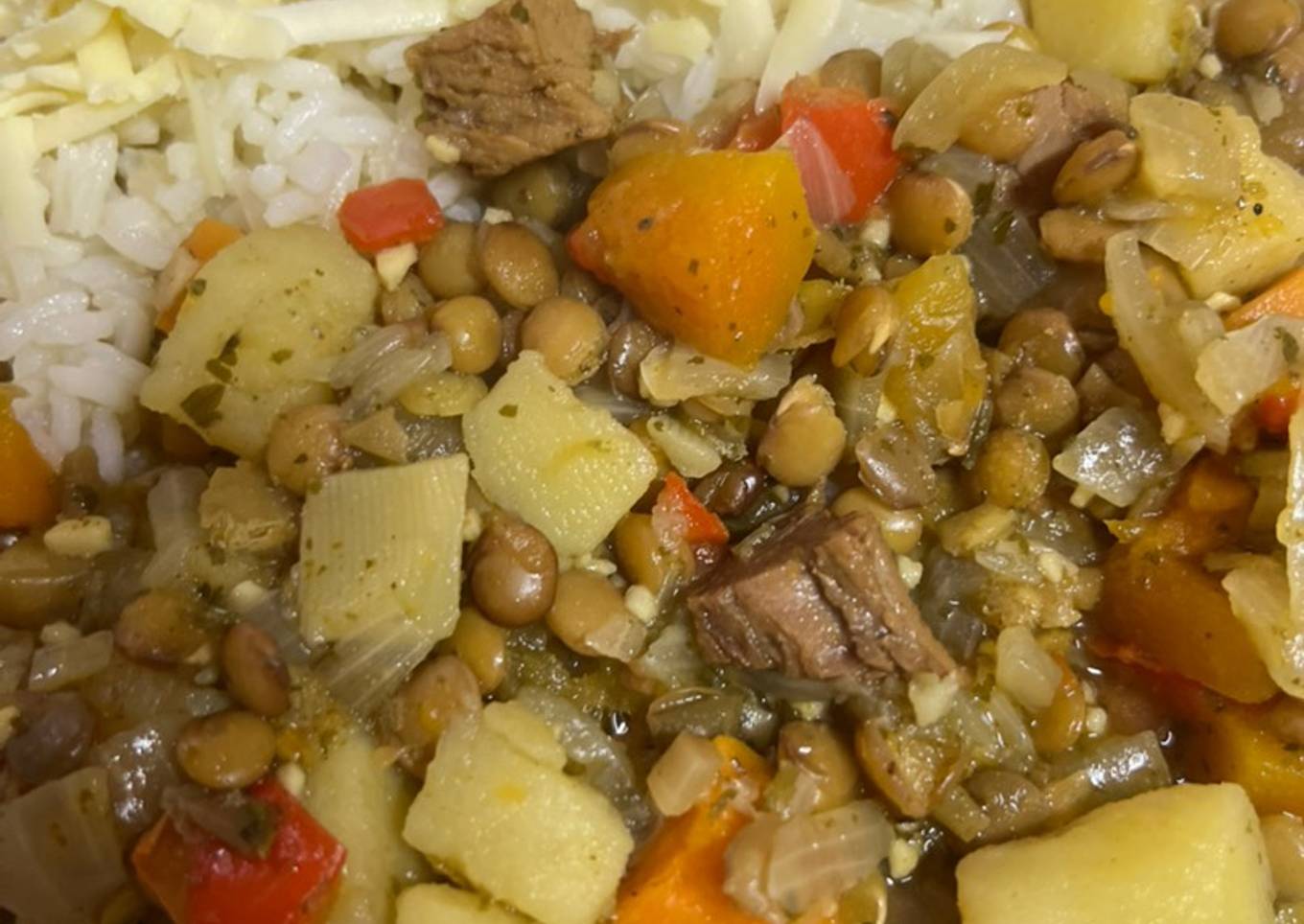 Que día hoy! En casa todos con flojera de cocinar, con los días así de feos y húmedos, nadie quiere hacer nada 🤣 pero siguiendo la consigna de la #revista sumo mi súper guiso de lentejas facilísimo y con el resto de asado que quedó el domingo. Todo se usa!