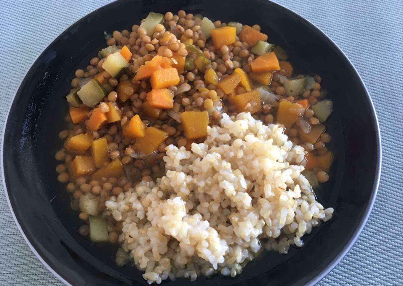 - Probar de sal y cuando las lentejas estén cociditas retirar del fuego. Servir con arroz integral.