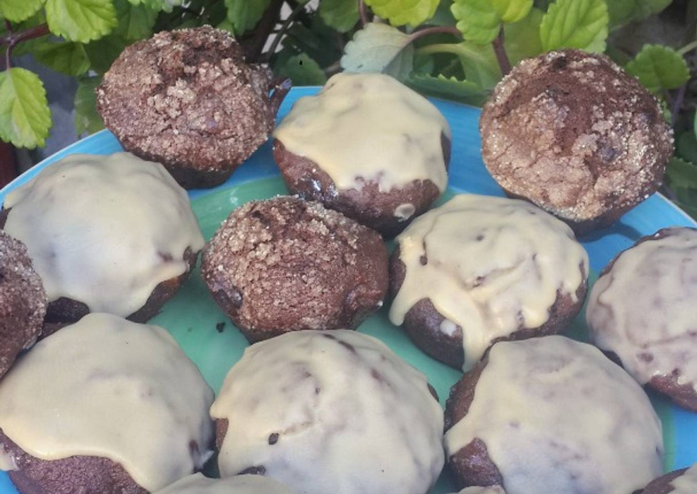 Muffins integrales de lentejas y cacao con glasé de café☕🍫