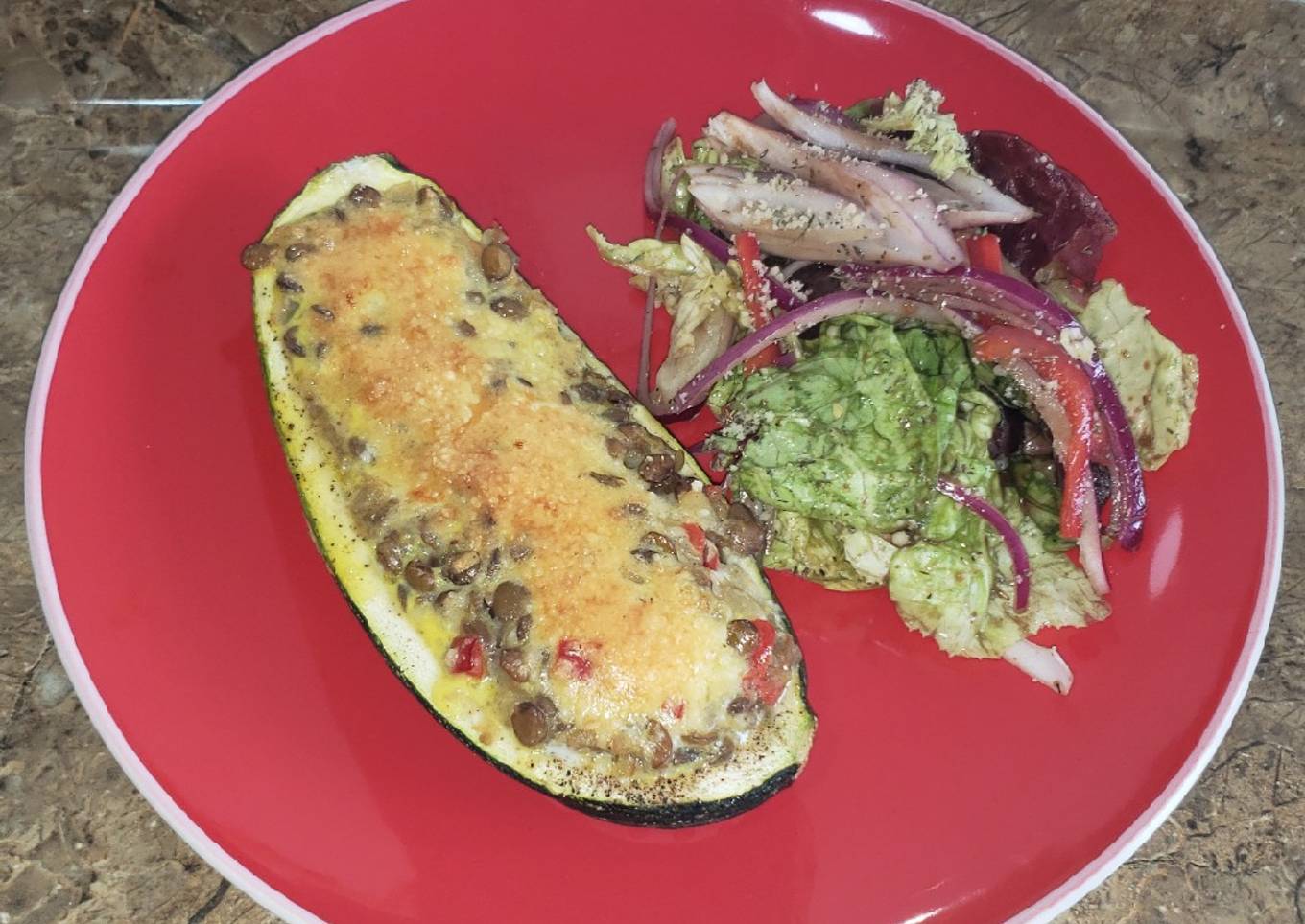 Calabacín relleno de lentejas