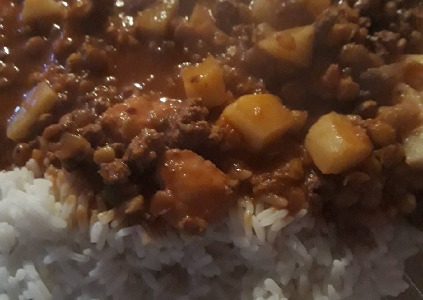 - Cuando este pronta la carne agreg贸 las papas, las lentejas y la salsa de tomate.