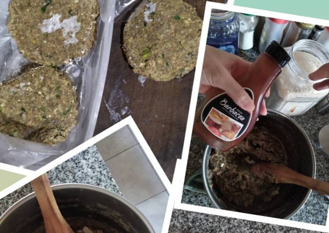 - Agregar pan rallado y armar las hamburguesas.colocarlas en plancha o placa o lo que sea plano para poder meter al freezer por unas 4 horas. Luego cocinar en sartén con aceite previamente caliente y cocinar a fuego bajo. Rinden 10 hamburguesas
