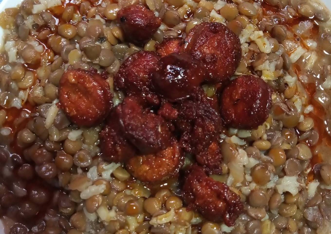 - Freír las longanizas y servir caliente sobre las lentejas. Y a disfrutar 💖