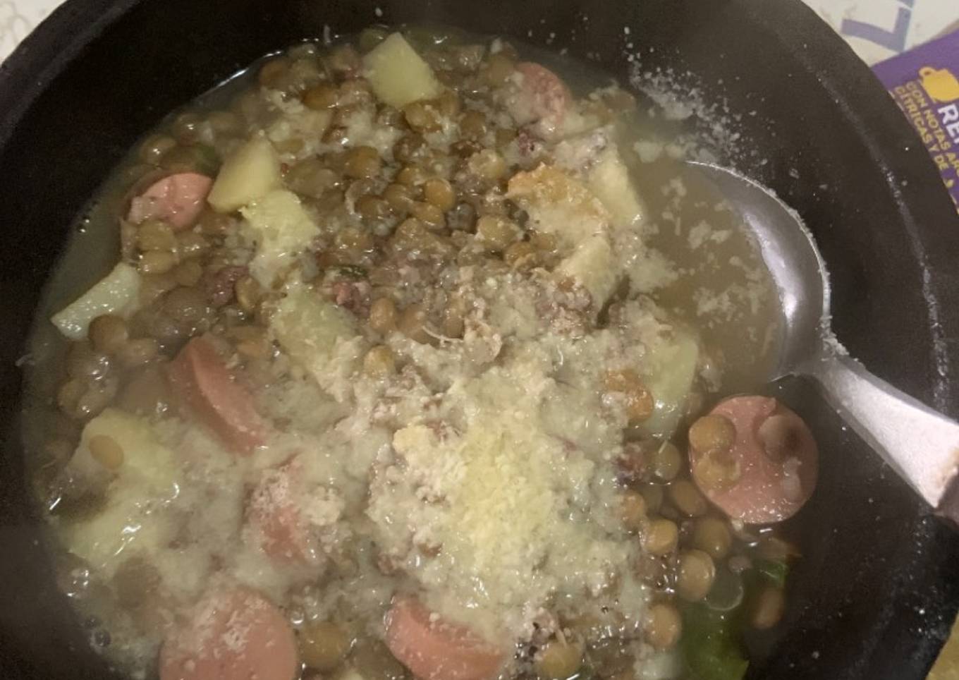- Cuando las papas estén doradas y las lentejas cocidas, se junta todo