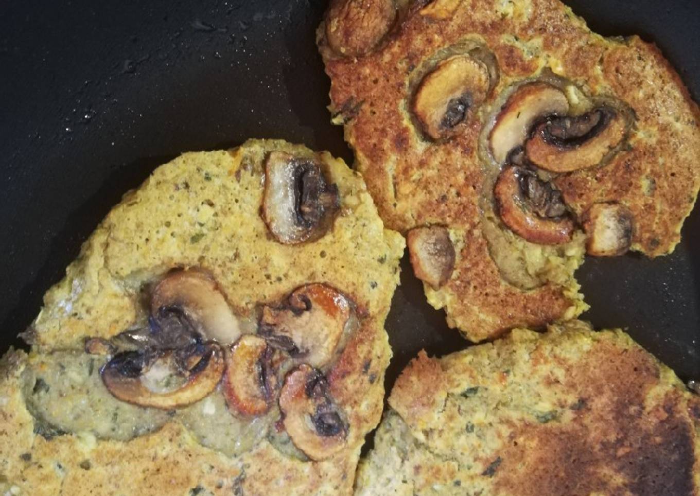 - Con ayuda de una cuchara, colocar la masa en una sartén al fuego previamente engrasada como si fuesen pankakes y dorarlos unos 5 minutos de cada lado a fuego medio