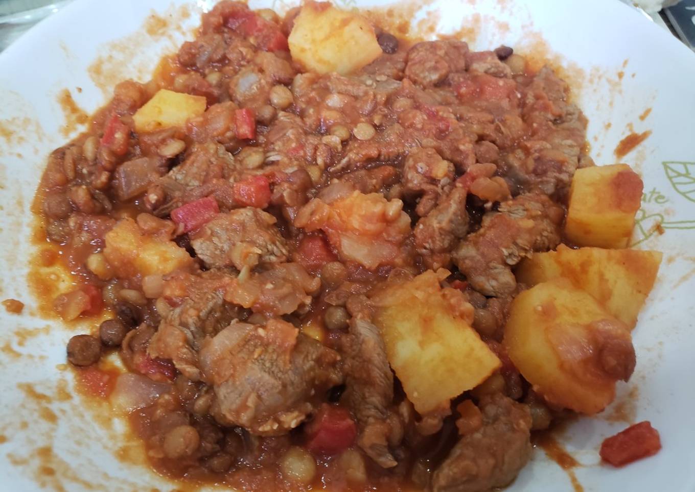 - Agregar las lentejas y dejar cocinar hasta wue las papas estén blandas. Yo lo voy revolviendo y mantener tapado...