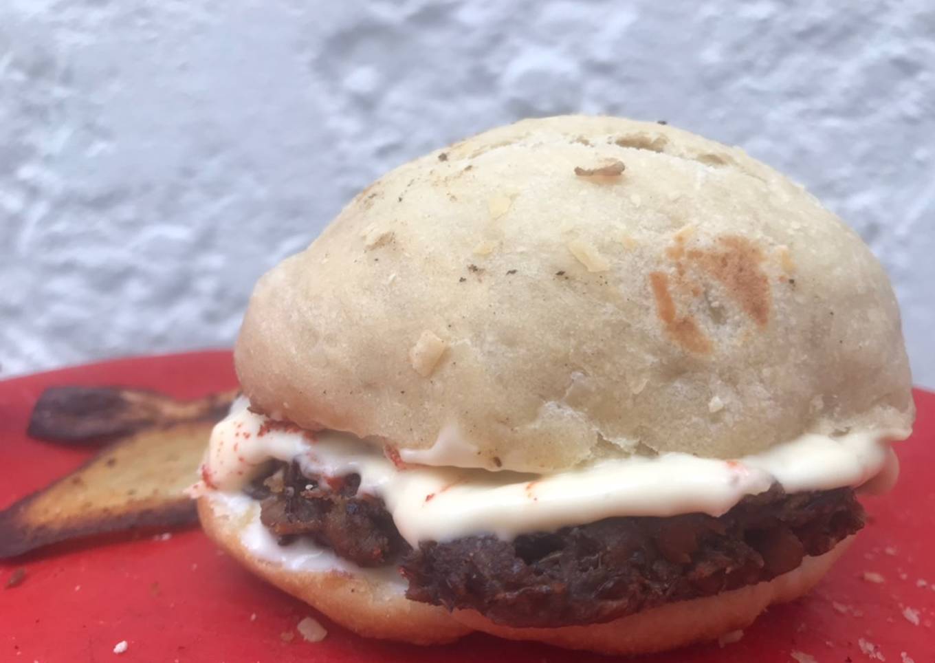 - Finalmente a degustarlas, las acompa帽e con un pan de hamburguesas casero y unos chips de boniatos 馃構