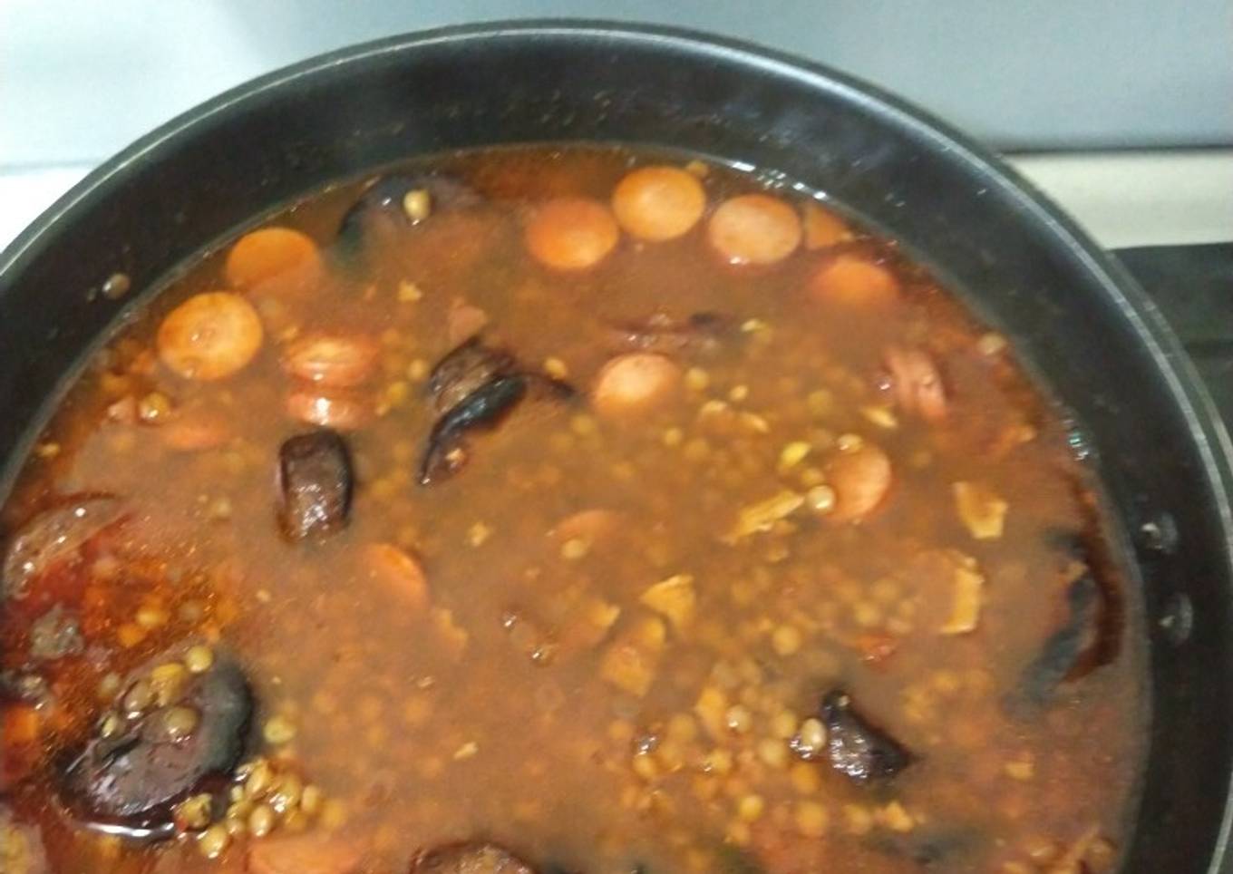 - Al final doras el chorizo y agregas a la lenteja