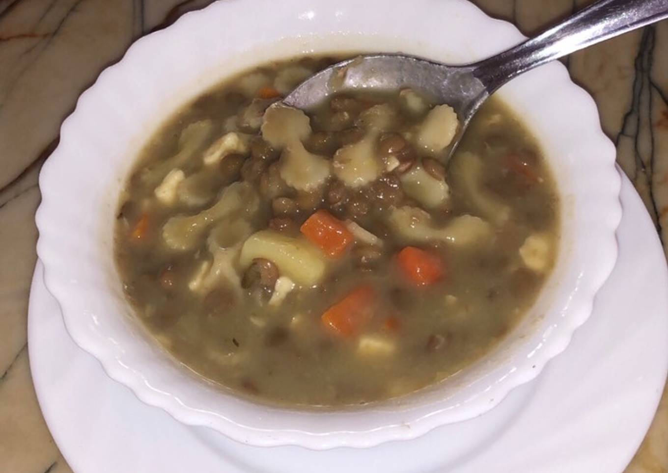 Sopa de lentejas y lacitos